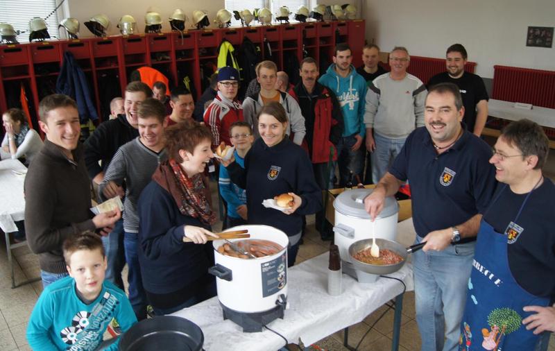 Fördervereinsvorsitzender Jürgen Maurer, Wehrführer Rainer Matzke, Chefkoch Harald Skär und Michael Bier und Andreas Jache am Zapfhahn hatten um die Mittagszeit alle Hände voll zu tun. Und was vor Jahren noch reine „Männersache" war, hat sich auch in Bärweiler zum Positiven verändert; jedenfalls gaben Laura Bier und Yvonne Billard an den bereitgestellten Erbsensuppen- und Wursttöpfen ein gutes Bild ab.