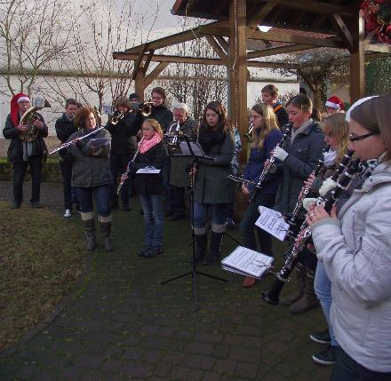 | Der Musik- und Unterhaltungsverein Lauschied spielte an Heiligabend in Lauschied und Bärweiler traditionelle Weihnachtsweisen. Foto: Mareike Keiper |
