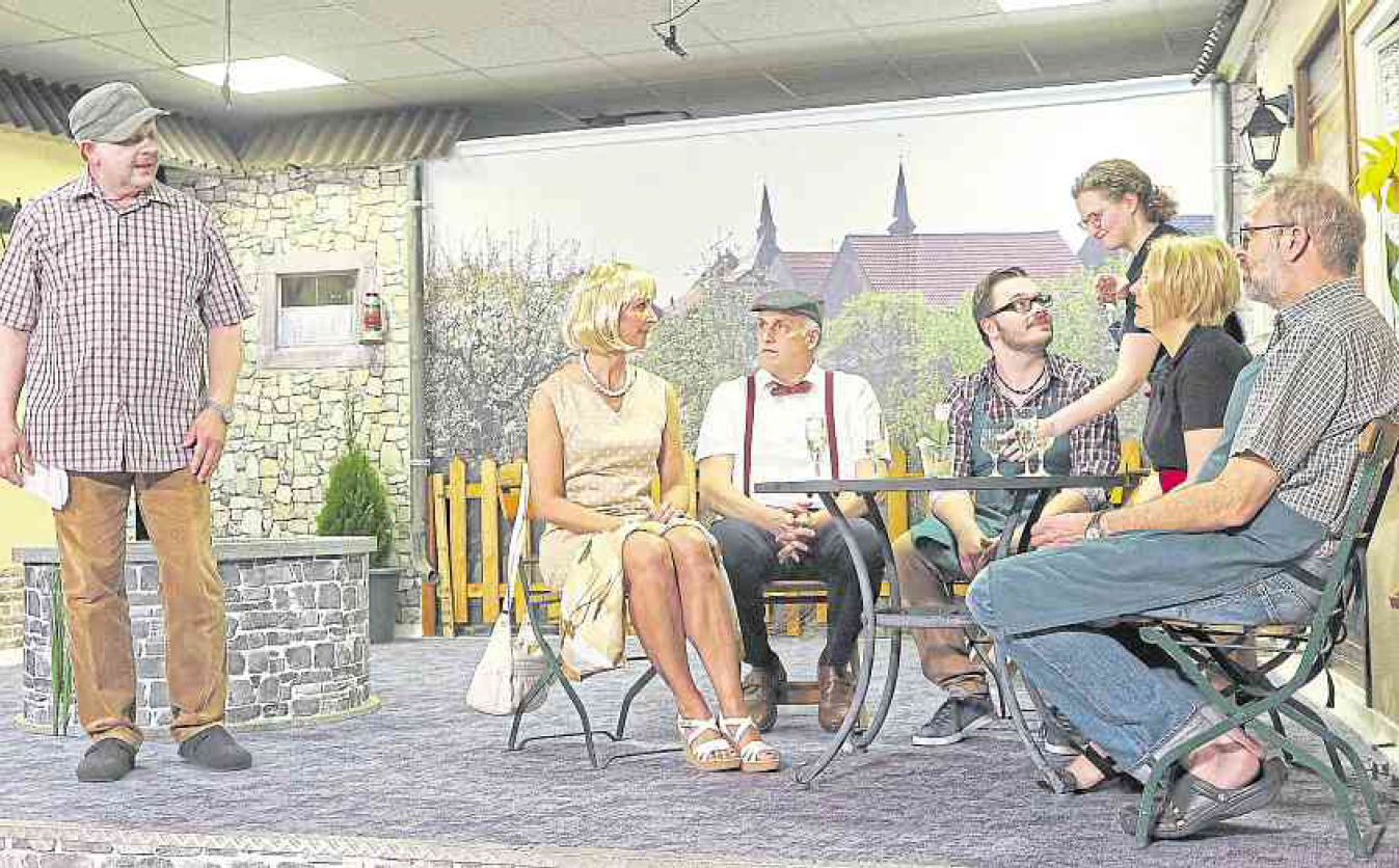 Jetzt war Premiere, und die war ein Kracher. Es geht um einen Brunnen, der wohl auf der Grenze der Grundstücke der Wirtin Alma Roggensack, gespielt von Silke Hartmann und ihres Nachbarn, des Gemüsehändlers Johann Kracher